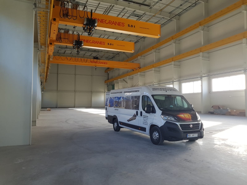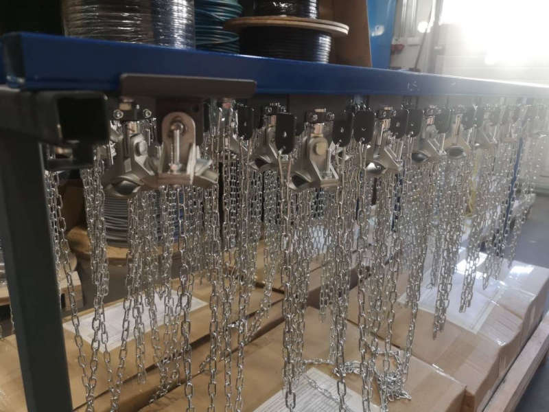 Firany kablowe, w tym największy z magazynem wózków 5,1 metra, 41 kabli.