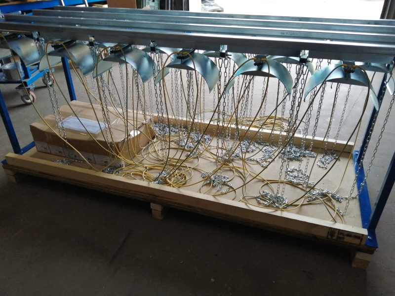 Przesyłka eksportowa obejmująca 16 firan kablowych, począwszy od małego dźwigu o długości posuwu 7,5 metra do żurawia kontenerowego o rozpiętości 44-metrów.