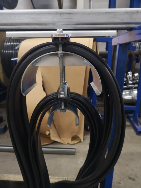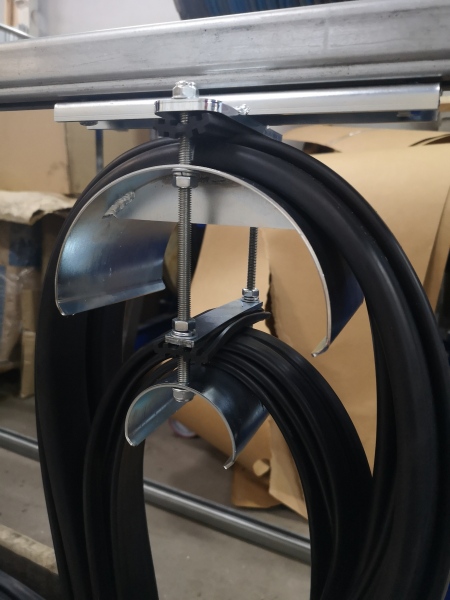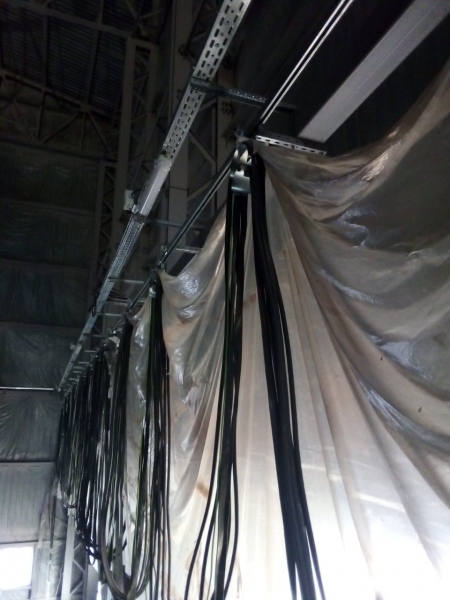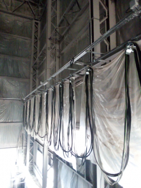 Zwracamy uwagę na firany kablowe do profilu A.B i C z wózkami z dwoma siodłami w trakcie produkcji i po dwóch latach pracy w przedsiębiorstwie o agresywnych warunkach pracy - dużym zapyleniu. Ze względu na trudne, agresywne warunki pracy Klient dokonuje remontu pomieszczenia. Warto jednak zauważyć, że stan firany nie uległ zużyciu i można je używać przez kolejny okres produkcyjny wynoszący 2 lata. Długą żywotność firan kablowych i wózków kablowych można osiągnąć poprzez prawidłowy projekt i wysoką jakość wykonania!