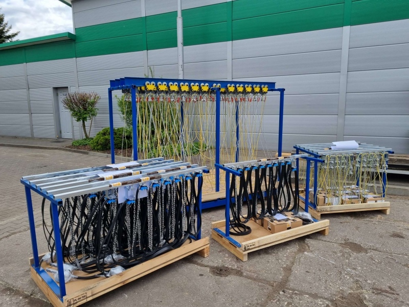 Zostały one zapakowane na profile transportowe, dwuteowniki, co zdecydowanie pozwoli to naszemu klientowi zaoszczędzić czas, na montaż firan kablowych na suwnicach.