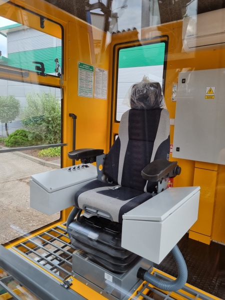 Kabina dźwigu kontenerowego zapewnia maksymalną widoczność nie tylko dzięki panoramicznym szybom przednim i bocznym, ale także szybie w podłodze. Okna podłogowe są chronione zdejmowanymi kratkami, aby umożliwić czyszczenie szyby. Kabina jest wyposażona w lusterka wsteczne. Wygodny obrotowy fotel operatora posiada kolumny pod joysticki, funkcje regulacji wysokości, ruchu do przodu i do tyłu, regulacji oparcia, a także podłokietniki przesuwne do tyłu i do przodu, na wysokość i na boki. Operator po dostosowaniu fotela do siebie ma możliwość pracy w komfortowych warunkach.